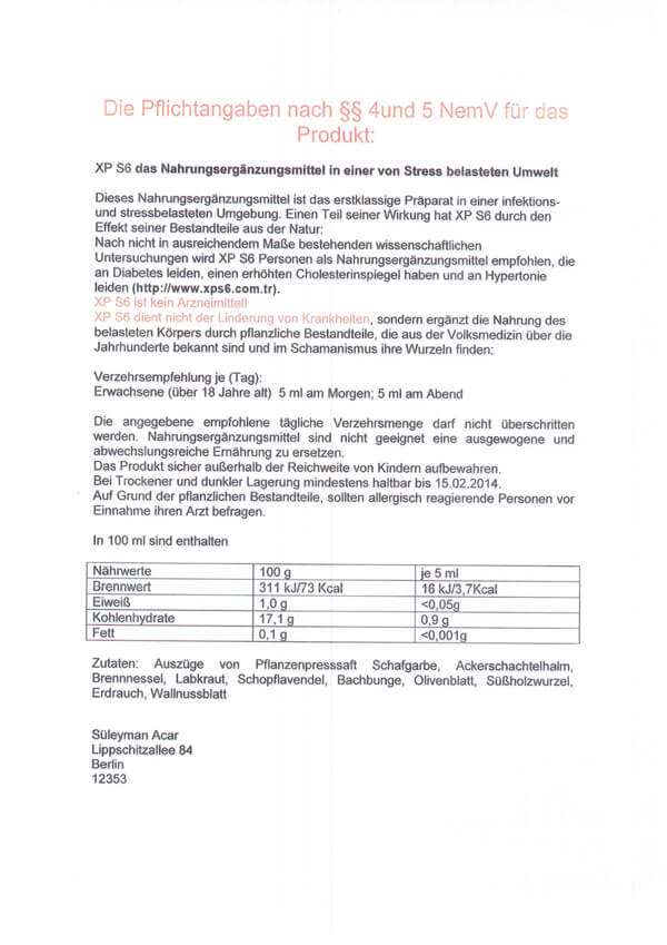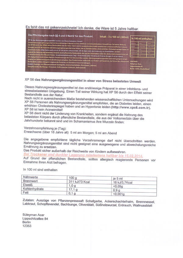 XP S6 DAkks Akredite Laboratuvarları Sonuçları (Germany)
